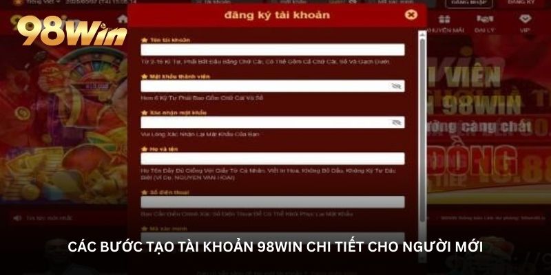 Các bước tạo tài khoản 98WIN chi tiết cho người mới